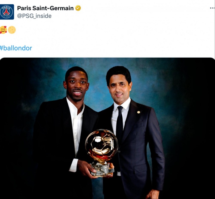 頒獎(jiǎng)典禮結(jié)束后,巴黎官方社媒曬出登貝萊手捧金球獎(jiǎng)獎(jiǎng)杯與巴黎圣日耳曼主席納賽爾的合影。這一瞬間不僅是他個(gè)人的榮耀時(shí)刻,也象征著巴黎俱樂部近年來在歐洲足壇雄心勃勃的努力取得了豐碩成果。