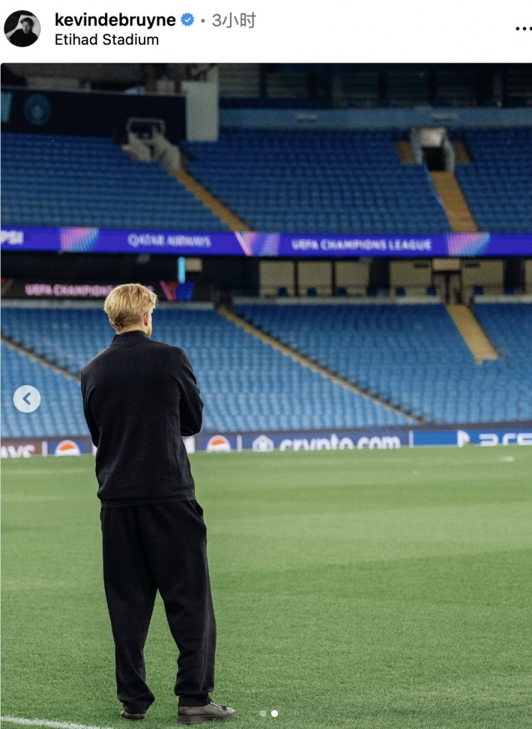 德布勞內曬出賽前在伊蒂哈德踩場的個人動態,其中一張站在球場的獨照讓人感慨。