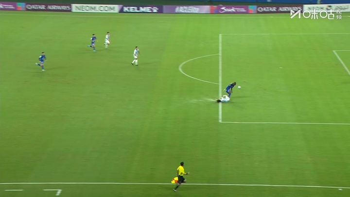 傅歡無壓力回傳變“直塞”,陳威出擊帶倒對手,裁判VAR無表示